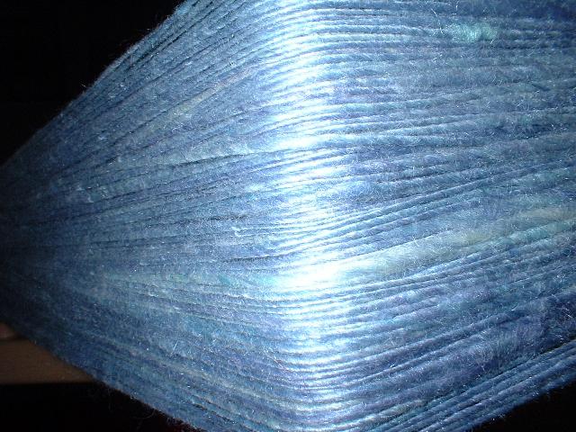 Voici le fameux mohair que j'ai massacré aprés filage sur une bobine spécial filage fin... Heureusement, la photo suivante montre la réparation |