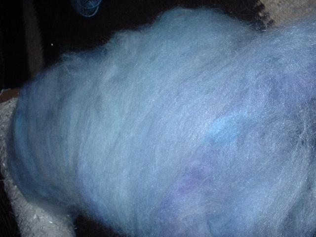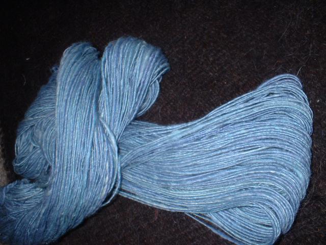 Voici la laine et soie des laines du mouchon que j'ai teinté dans les bleutés |