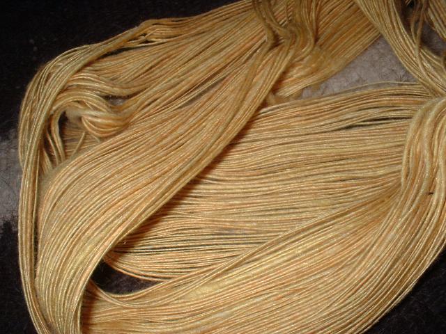 Voici l'écheveau en préparation. On voit bien la brillance de cette fibre |