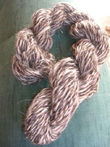 Un filage un peu palôt et morne, qui retordu avec d'autres couleurs |