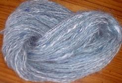 C'est la première fois que je mélange du mohair et de l'angora. J'ai suivi les conseils de Piérô pour ce qui est de l'effilochage avant cardage, c'est facile à faire et j'aime assez bien le résultat. J'ai mis quelques explications à cette adresse http://abracadafil.free.fr/nuage.htm |