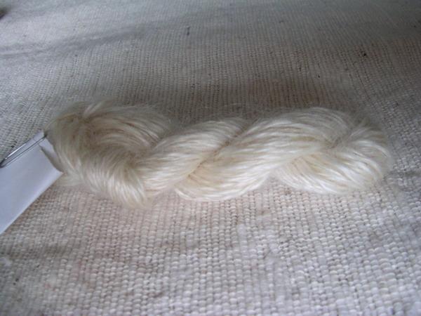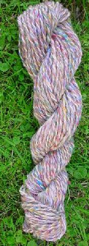 Mélange de fibre de Piérô: Babydoll et Alpaga. Facile à filer et bien gonflante. j'aime beaucoup sa couleur. |
