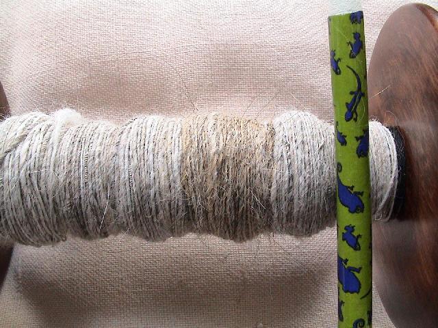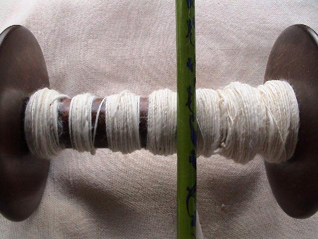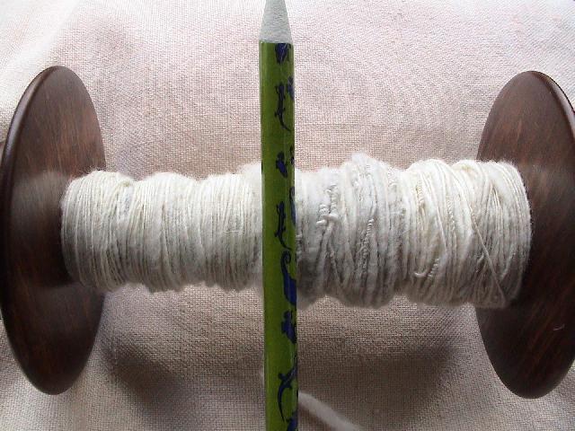 A gauche du crayon, les fibres plus longues qui se filent bien depuis les flocons, à droite la calamité très courte !!!!!!!!!!! |