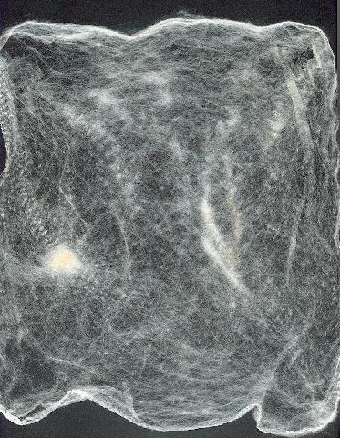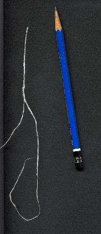 Voilà l'épaisseur d'une feuille de soie. Elle mesure environ 25cm carré. |