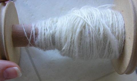 Cette laine ressemble à s'y méprendre à du mohair ! Je l'ai filée méthode "laine à carde", pour lui laisser toute sa douceur et son gonflant. |