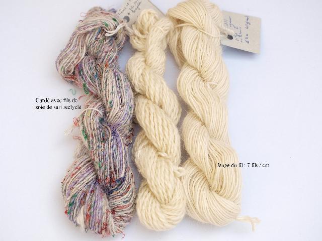 Filage 2 brins, célibataire et un autre avec ajout de fils de soie de sari recyclé |