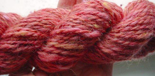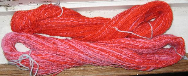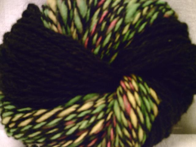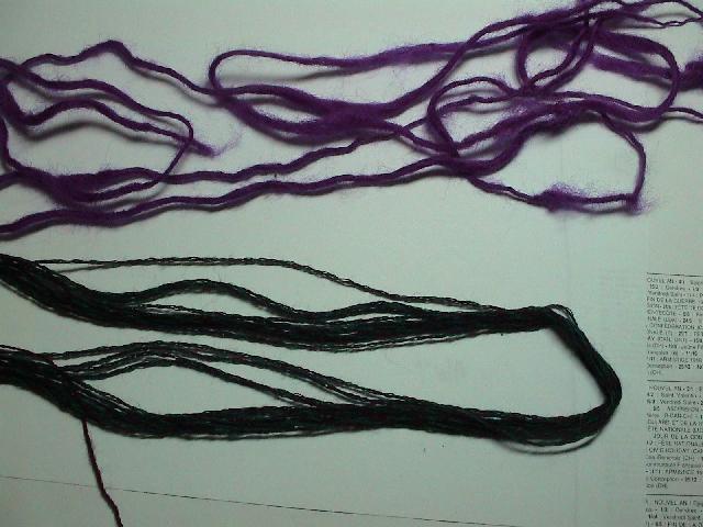 le brun c'est du gottland noir, l'autre, ce sont des laines qui me servent à feurtrer normalement mais que j'ai filées pour en faire une écharpe à ma fille et que j'ai retordues avec du noir |