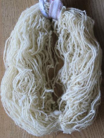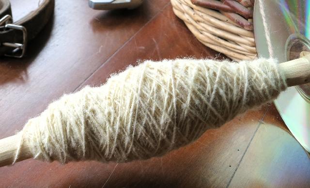 mes premiers essais de filage à partir de nappe de laine cardée, sur fuseau-CD |