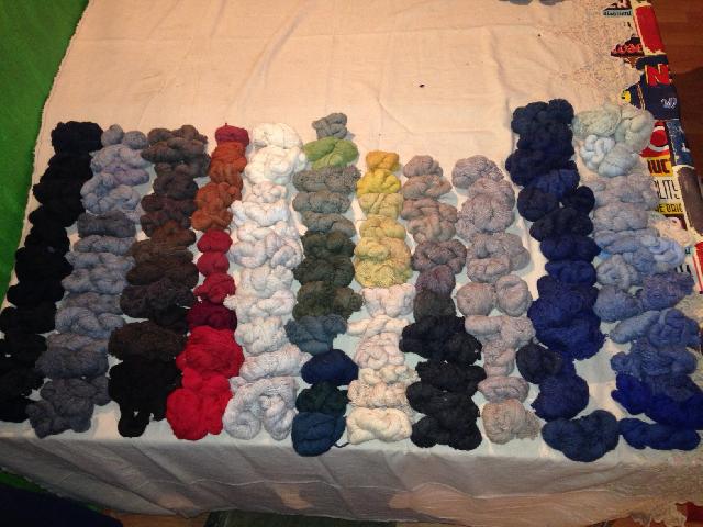 Lorsque j'avais acheté ma cardeuse échantillonneuse. Le directeur de la filature m'avait donné tous les échantillons restant aprés cardage et filage pour les essais de couleurs. J'ai tout trié et maintenant, il me faut tout mettre en bobines puis harmoniser les couleurs pour faire un tissage souvenir (sûrement un plaid) qui s'appellera Cardabella comme ma cardeuse. J'ai du taf pour tout démêler, il y a des échevettes assez vieilles et en vrac... |