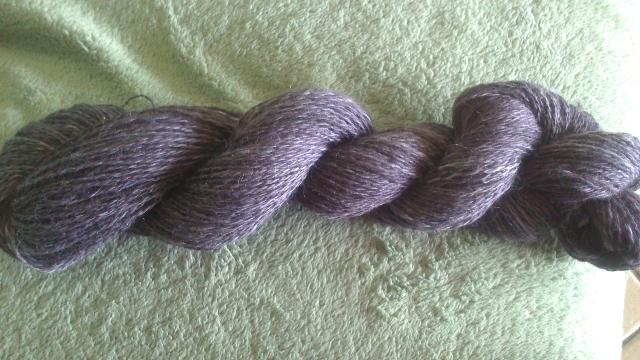 lama tondu maison, j'ai trouvé que la toison était quasi feutrée. après lavage, je l'ai finement écharpillée avant de la passer à la cardeuse à rouleaux, puis filée au fuseau, retors navajo |