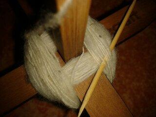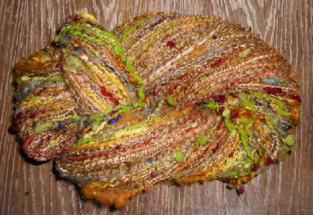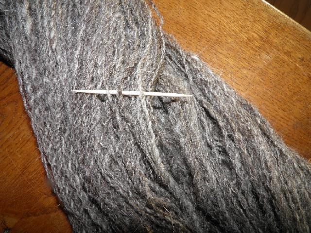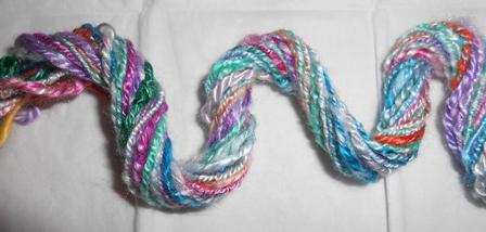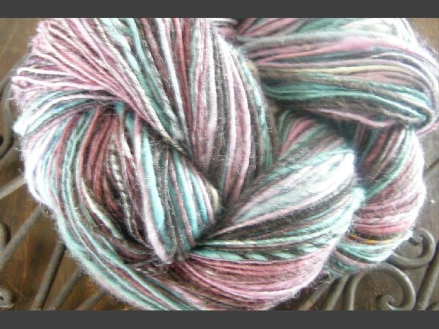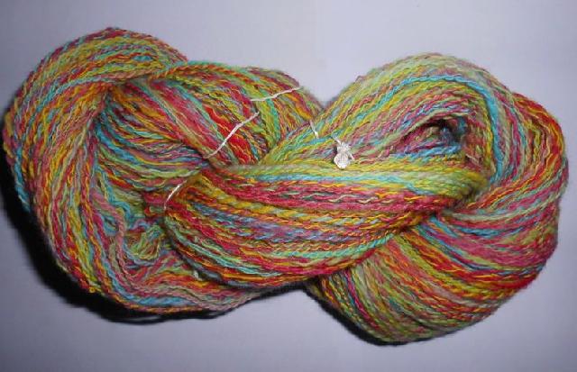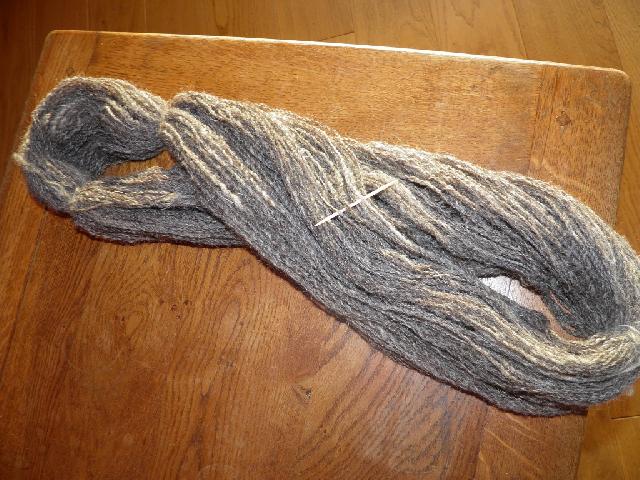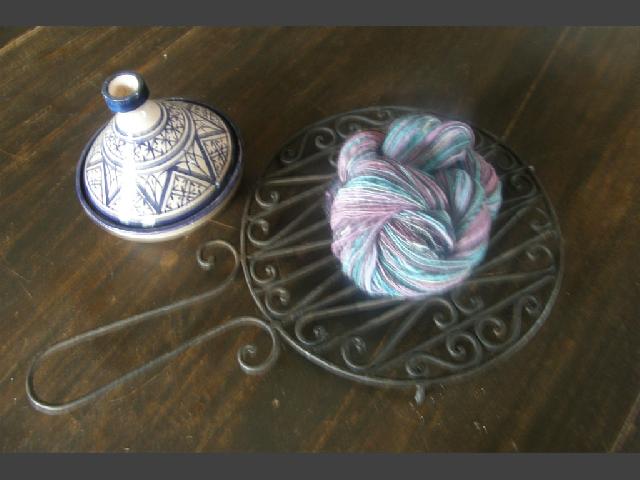 un petit essai avec la brick de soie teinte, filage avec retors navajo |