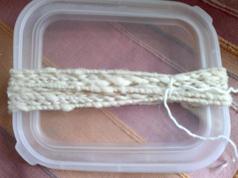 Voici ma 1ère réalisation de filage avec retord (sur fuseau Kromski). Ce n'est pas encore ça mais depuis ma première fois, j'ai évolué et"réussi" à joindre mes 2 célibataires (fil du commerce et ma laine) mais je me pose beaucoup de questions...c'est loin d'être parfait... |