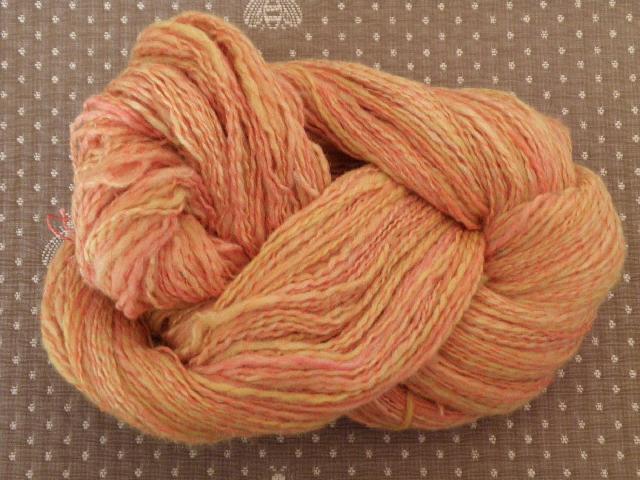 Filé au fuseau celui-ci et trempé dans le orange avec une pointe de violacé tirant sur le rouge |