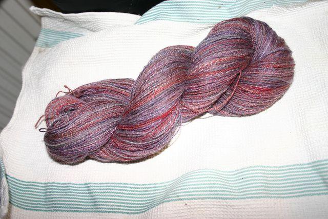 Toujours ces fibres mélangées, 70% mérinos et 30% soie en ce qui concerne le dégradé rouge rose, et 100% mérinos pour le noir. |