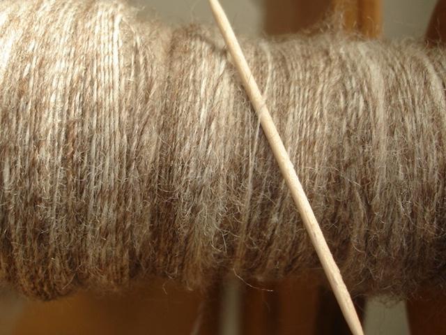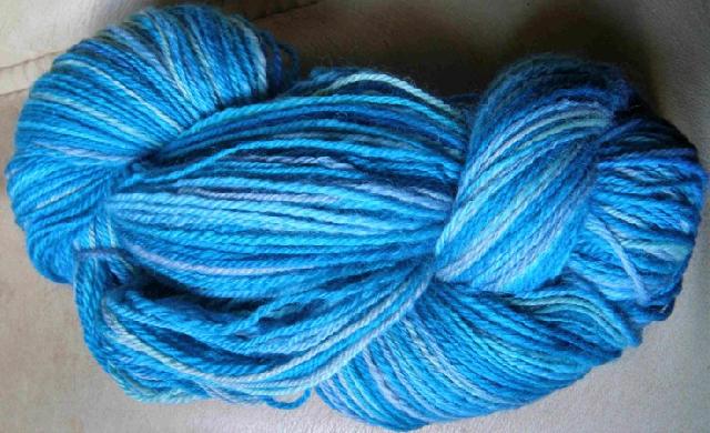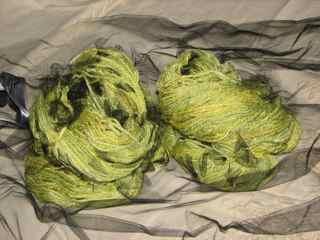 Mérinos et soie de chez " Les laines du Mouchon" 300m/100 g environ. |