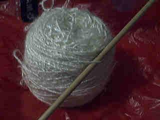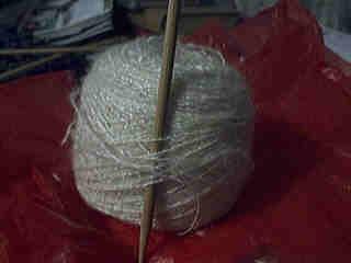 voilà 82g de mohair que j'ai eue de Soleil retordu avec un fil de soie. En tout 214m. |