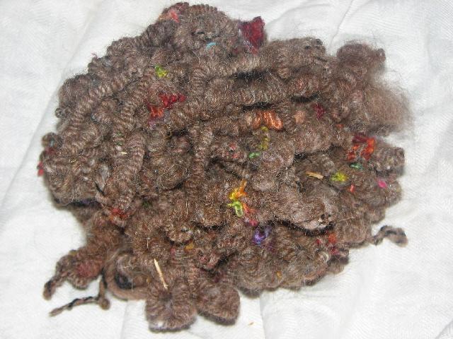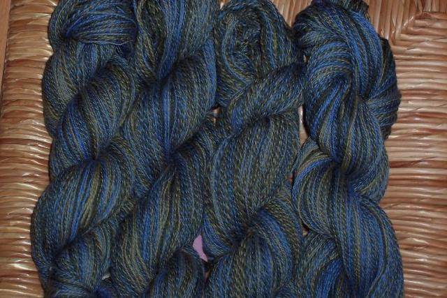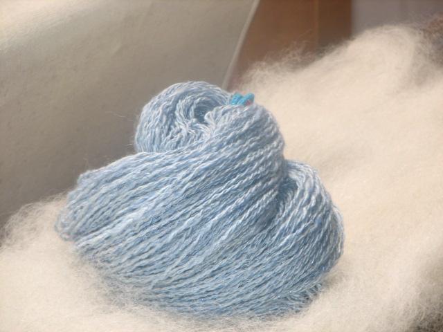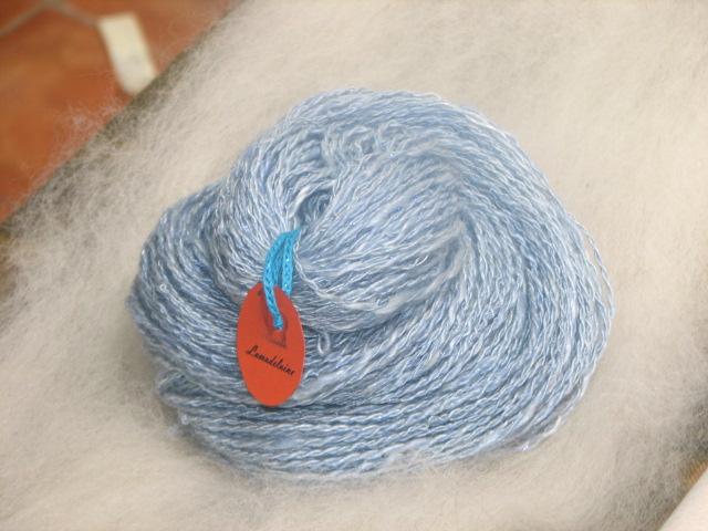 C'est un angora et soie filé sur le pli et retordu avec lui-même ; j'ai environ 473 m pour 98 g. |