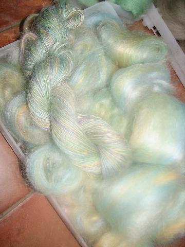 Falkland teinte en différente nuance avec One, cardée avec de l'angelina |