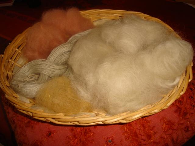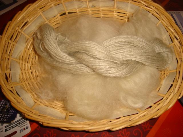 echevau mohair teinté bleu pastel avec graines par chantale