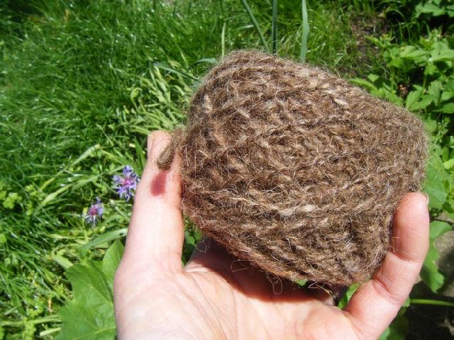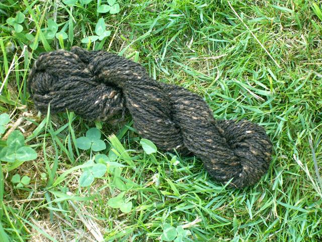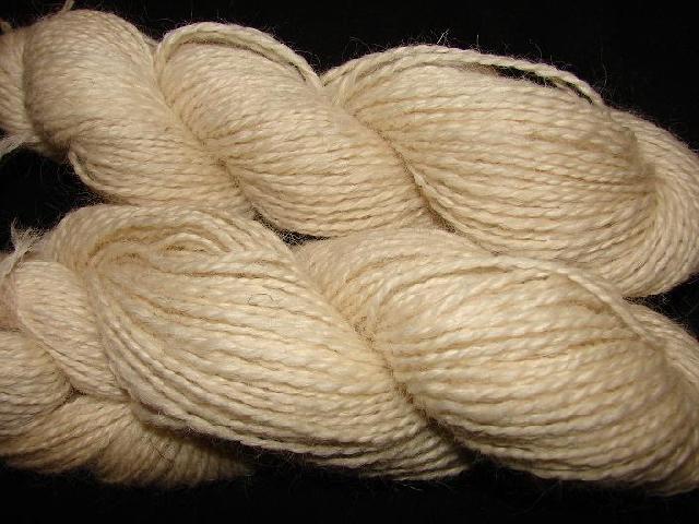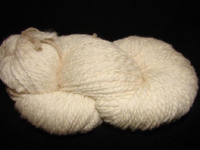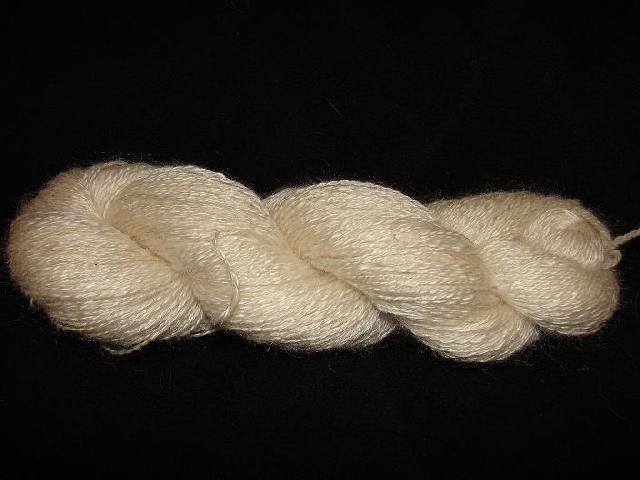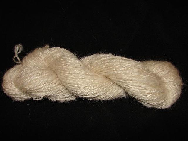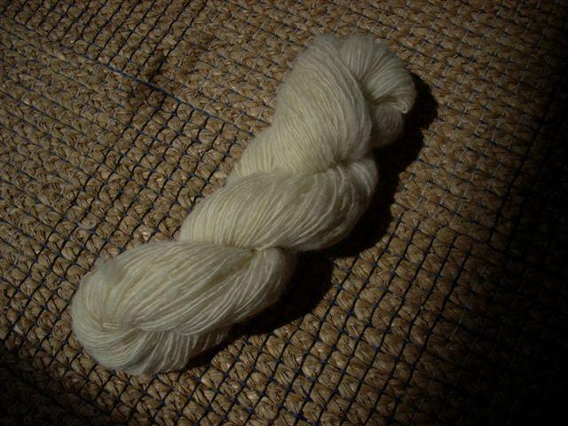 Falkland teint avec de la peinture pour soie One, puis cardé avec de la soie maulbère et retordu avec lui-même |