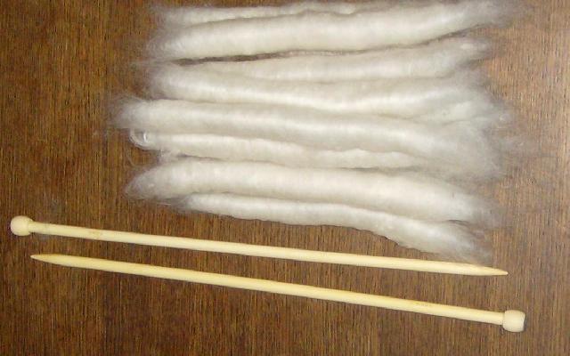 voici des petits rouleaux de mohair prêts à filer. |