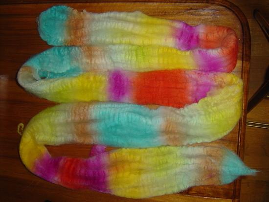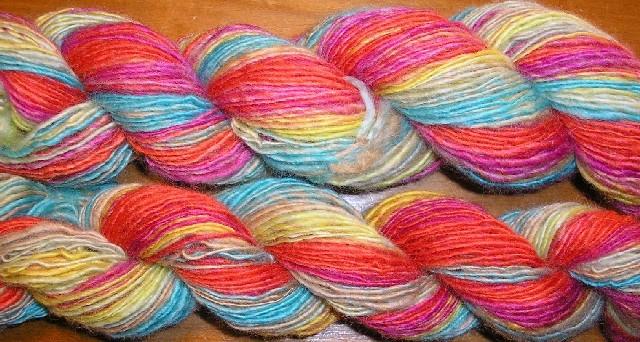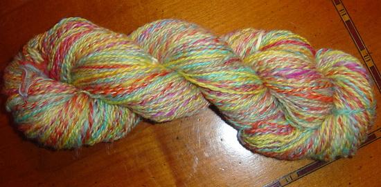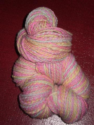 Voici le résultat du filage de ma part de la laine que nous avons teinte lors du brunch filage rhônalpin. |