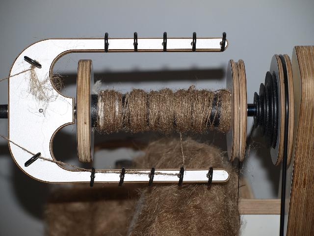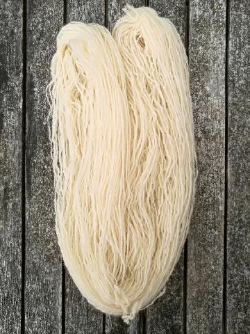 Fil réalisé à partir d'une toison de Clun Forest venant d'un élevage français. Echantillon de toison lavé à l'eau de pluie froide avec liquide vaisselle bio vinaigré, deux passages en cardeuse Louët vintage, filage sur mon vieux rouet breton saxony Tad Kozh et retors sur mon Joy 2. |