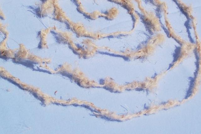C'est une horreur à filer car les fibres sont très courtes (moins de 1 cm). Je suppose que l'on garde les plus longues fibres pour l'industrie textile. |