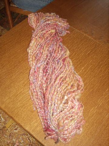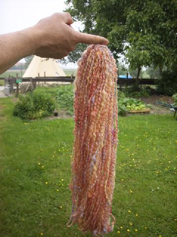 allez je me lance, un écheveaux fait avec une partie des fibres du sandwich, que j'ai amélioré, je l'adore celui là!!! |