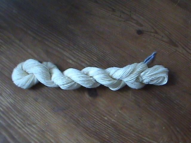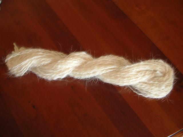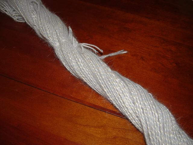 voici un petit écheveaux de laine angora retordue avec une laine et soie de chez Florence |