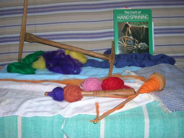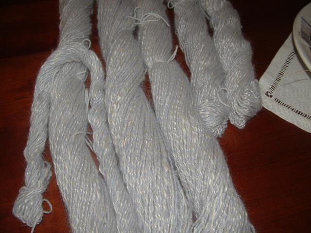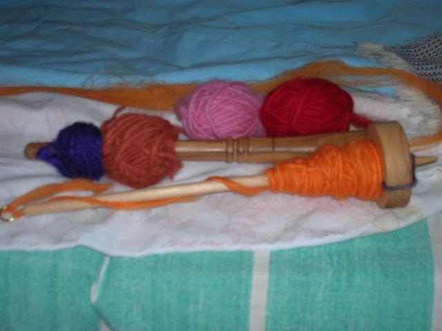 Enfin, les voici mes premiers fils. Pas fameux, mais peu à peu j'y arrive. On les voit dans l'ordre habituelle chronologique de filage. |