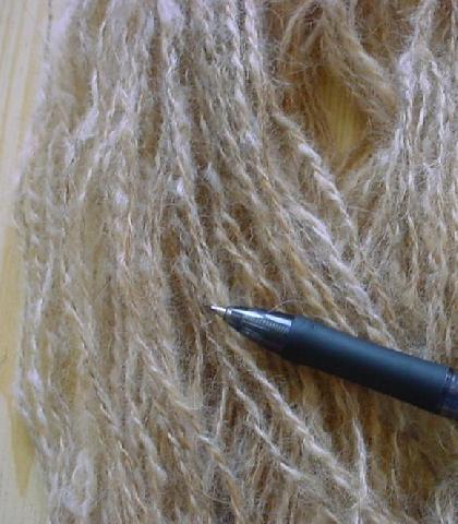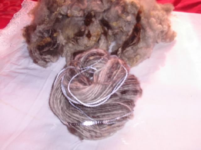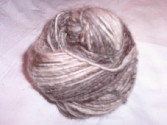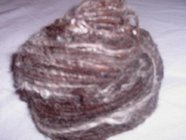 je reste dans le naturel, celui là d'echeveau, est un mélange alpaga blanc et swartblen fibre marron de chez florence, (j'espère que j'ai bien marqué le nom florence???) |