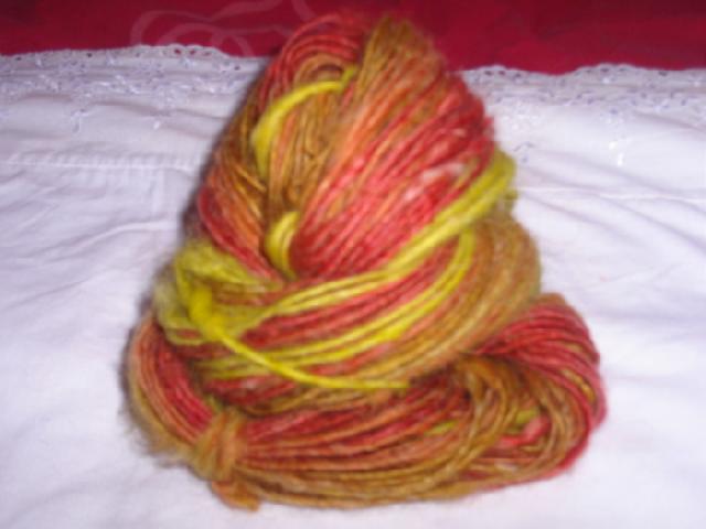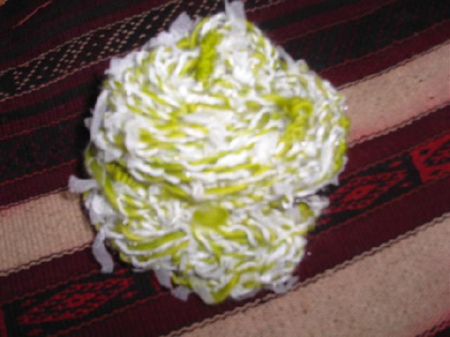 voici donc ce fils fantaisie, fait avec du mérinos de florence teint en vert, et retordu avec un fils de la filature houard!! |