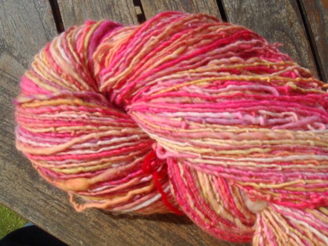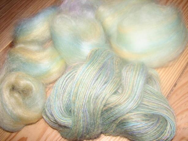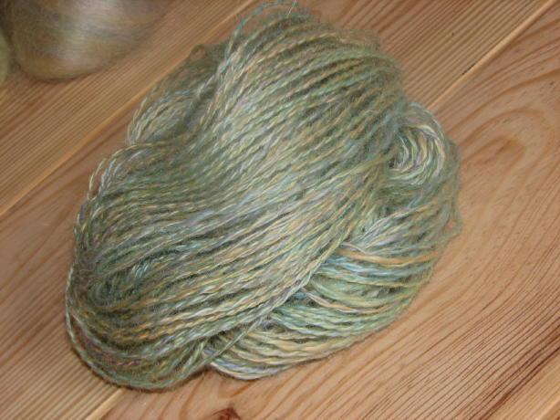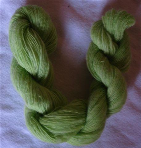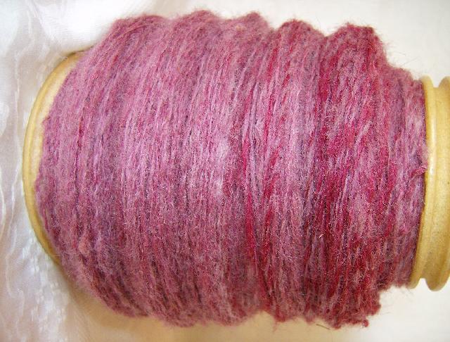 voilà la laine de florence , teinte avec teinture écolo, fixation à l'étuve, filage deux brins, 598 mètres pour 130 gramme, c'est le fil le plus fin de ma modeste collection |
