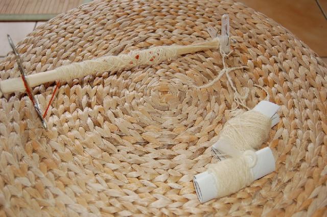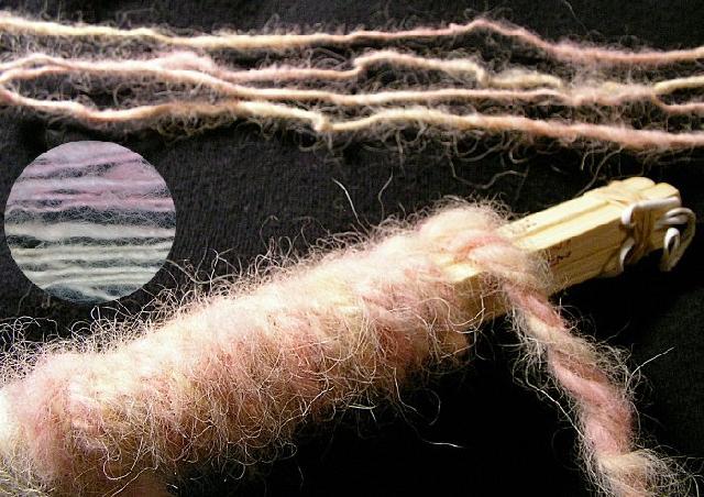 J'ai pris un mélange de chanvre et lin, lui ai rajouté de la soie, cardée avec ma Petite Strauch |