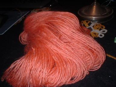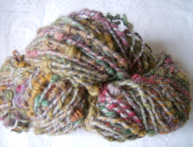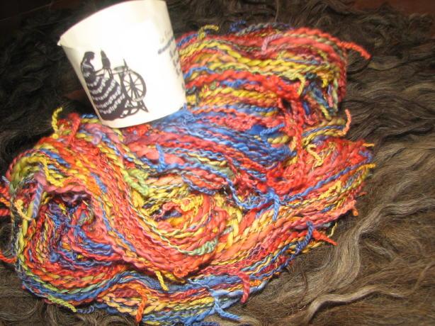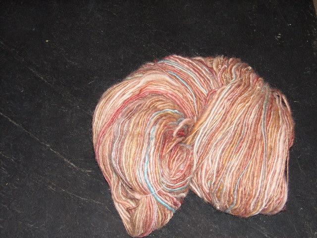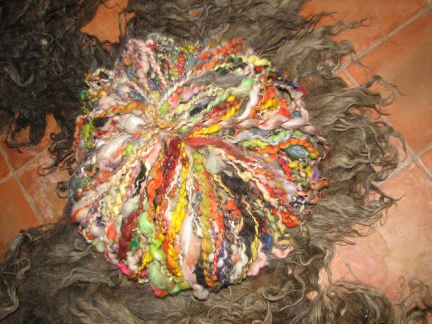 Un écheveau géant avec tous les déchets de fibres récupérées depuis mon année de filage. |