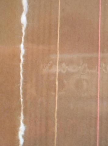 juste pour dire que ces soies se filent fins, fins....à titre de comparaison, le fil de droite est du fil à coudre! celui du milieu la soie en question et à gauche, un petit retors essai avec de la laine et bourette de soie |