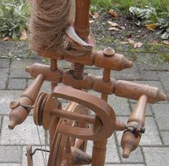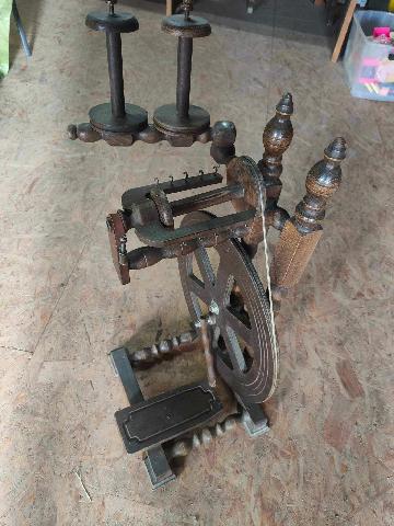 Rouet ancien, auquel il manque les demoiselles, l'épinglier et sa bobine. |