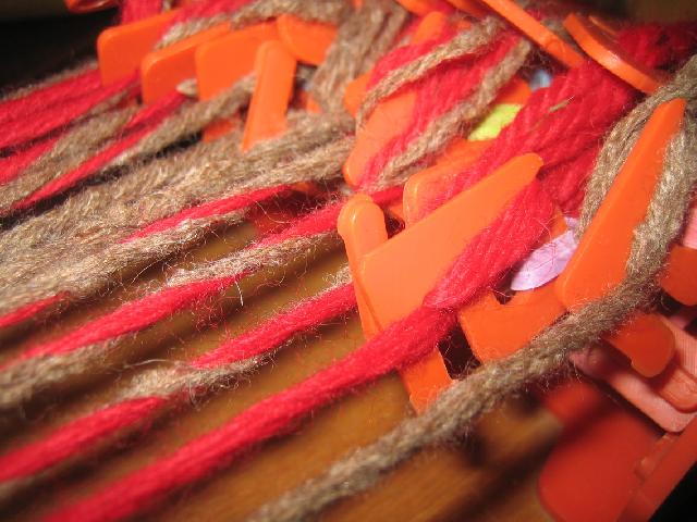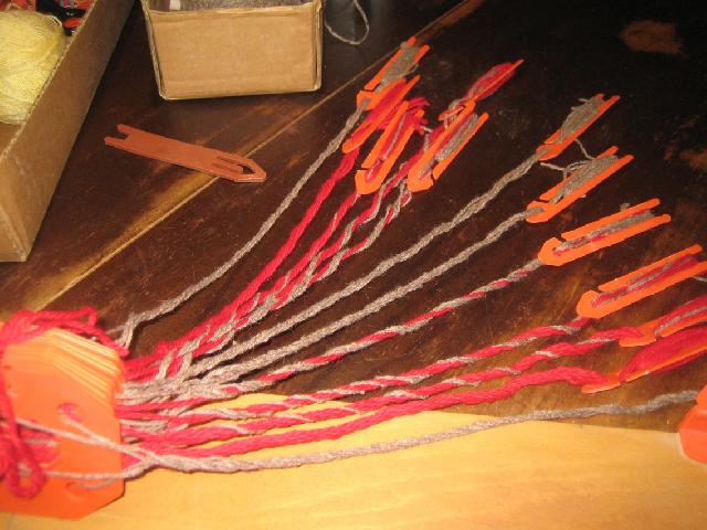 Utilisation des petits crochets pour bloquer les navettes portant chaque fil de chaîne |