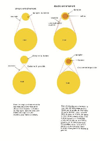 Voilà les exemples de passage de la courroie sur un simple et sur un double entraînement |