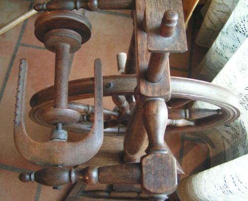 voilà l'épinglier que j'ai fait faire pour un très ancien rouet avec lequel je n'avais pas la possibilité de retordre |
