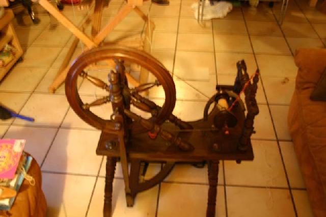 Je ne connais rien aux rouets. Celui-ci dès que je l'ai aperçu chez Emmaüs, j'ai dit "il est pour moi". Je ne sais pas vraiment pourquoi puisque je n'y connais rien.. serais-ce vous qui m'avez donner le virus ???? Dites-moi ce que vous en pensez, est-il bon à quelque chose ? Enfin il tourne c'est déjà ça!! |