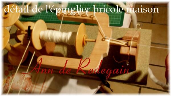 Détail de l'épinglier , simple entrainement, vitesse contrôlée par le rhéostat et la tension donnée au fil. Les bobines ont été achetées chez Sandrine, le reste est de la récup de bois de l'atelier de mon fils . |
