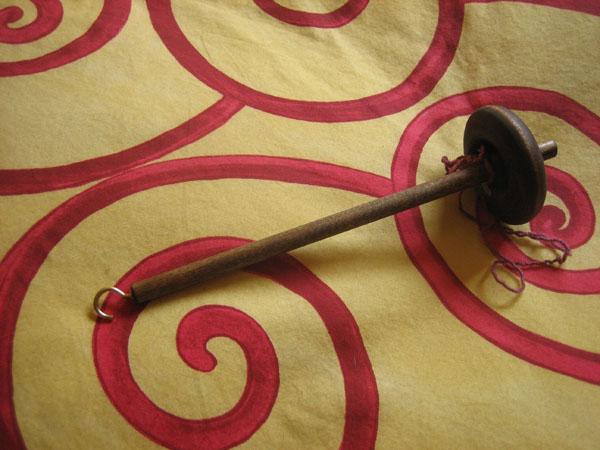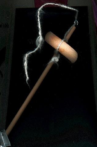Je commence à filer au fuseau et un membre m'a suggéré d'en prendre une photo et de l'afficher. J'ai également pris des photos de ma fille qui s'est emparée du fuseau dès que je l'ai posé sur la table. |