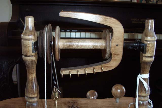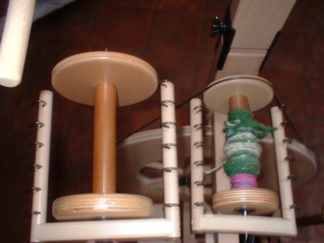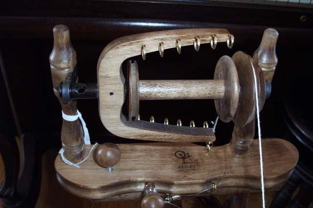 le voici avec l'option pour faire les écheveaux, à monter et à démonter au fil de notre fantaisie. Il faudrait qu'il invente un truc pour compter les tours, on saurait combien de métrage l'écheveau contient. |