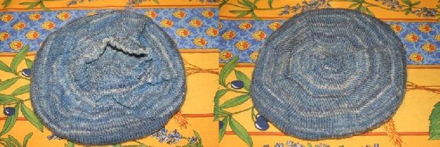 Tricoté avec ma "vrille de Noël". Avec fil métallique au centre, puis sans. |