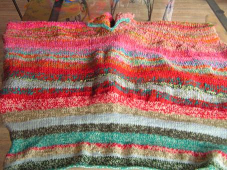 écharpe tricotée grace au point de Sandrine pour remercier Robert et Françoise d'Ariège de m'avoir donné de leur toison de moutons de race vendéenne |