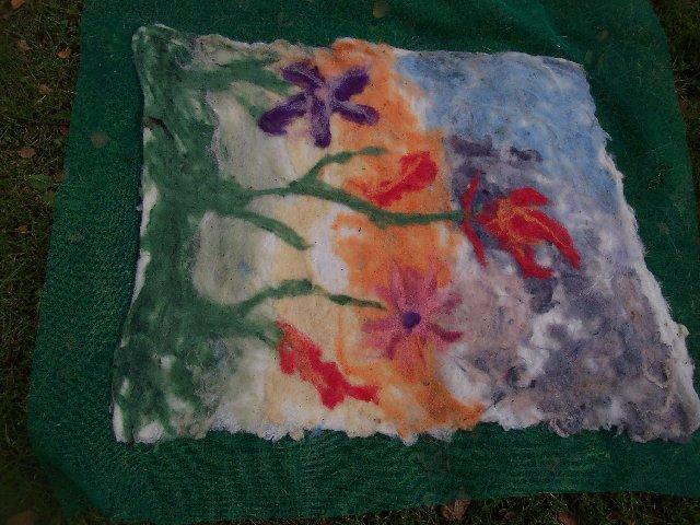 J'ai maintenant suffisamment de couleurs. Je suis nulle en peinture, mais les fibres, l'eau et le savon font le travail à ma place. Reste à maîtriser les glissements de couches de laine |