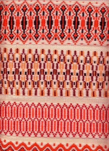 En pure laine (filage souple, non serré), cette banderolle est réversible. Les 2 photos des détails des points peuvent être envoyées en MP. |