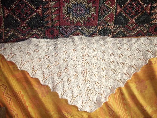 Je remercie le forum qui m'a envoyé l'un et l'autre modèle pour tricoté un châle. Voici celui que j'ai terminé. Je sais, la laine est trop grosse et il y a des erreurs.... Mais moi je suis bien contente d'y être arrivée ! |